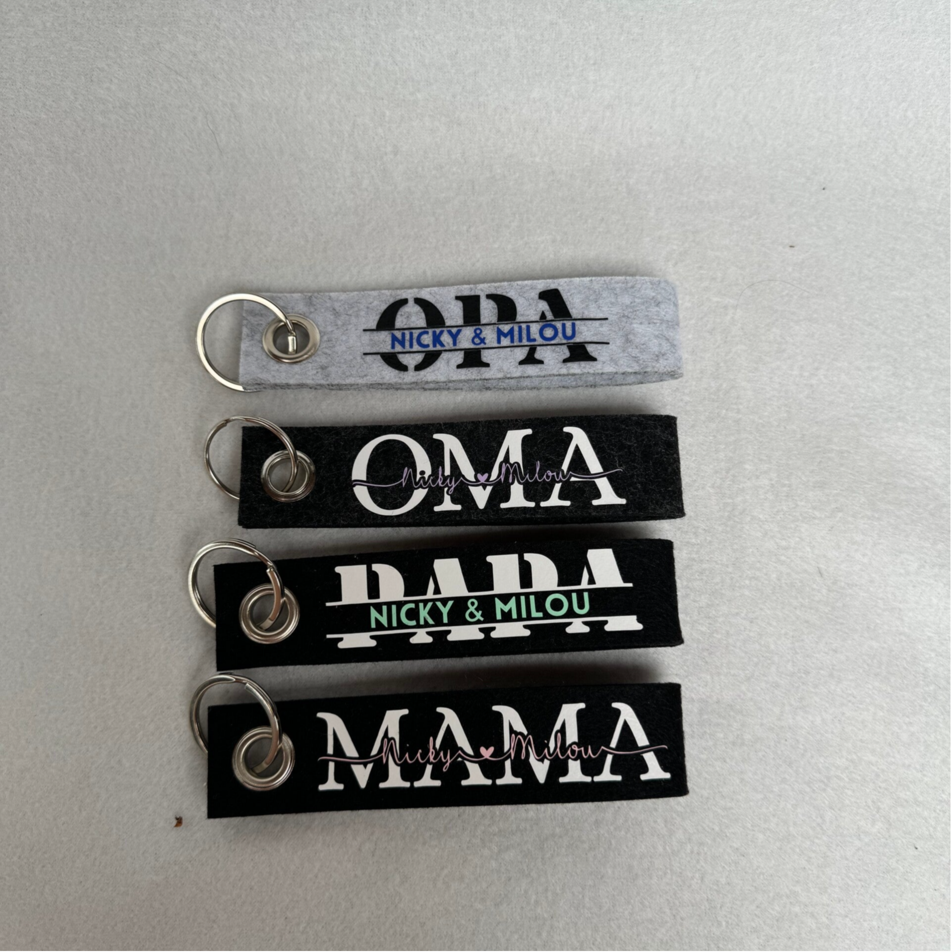 De sleutelhangers zijn vervaardigd van vilt en roestvrij staal, wat zorgt voor stevigheid en duurzaamheid. Ze zijn bestand tegen breuk of vervorming en hebben een langere levensduur.